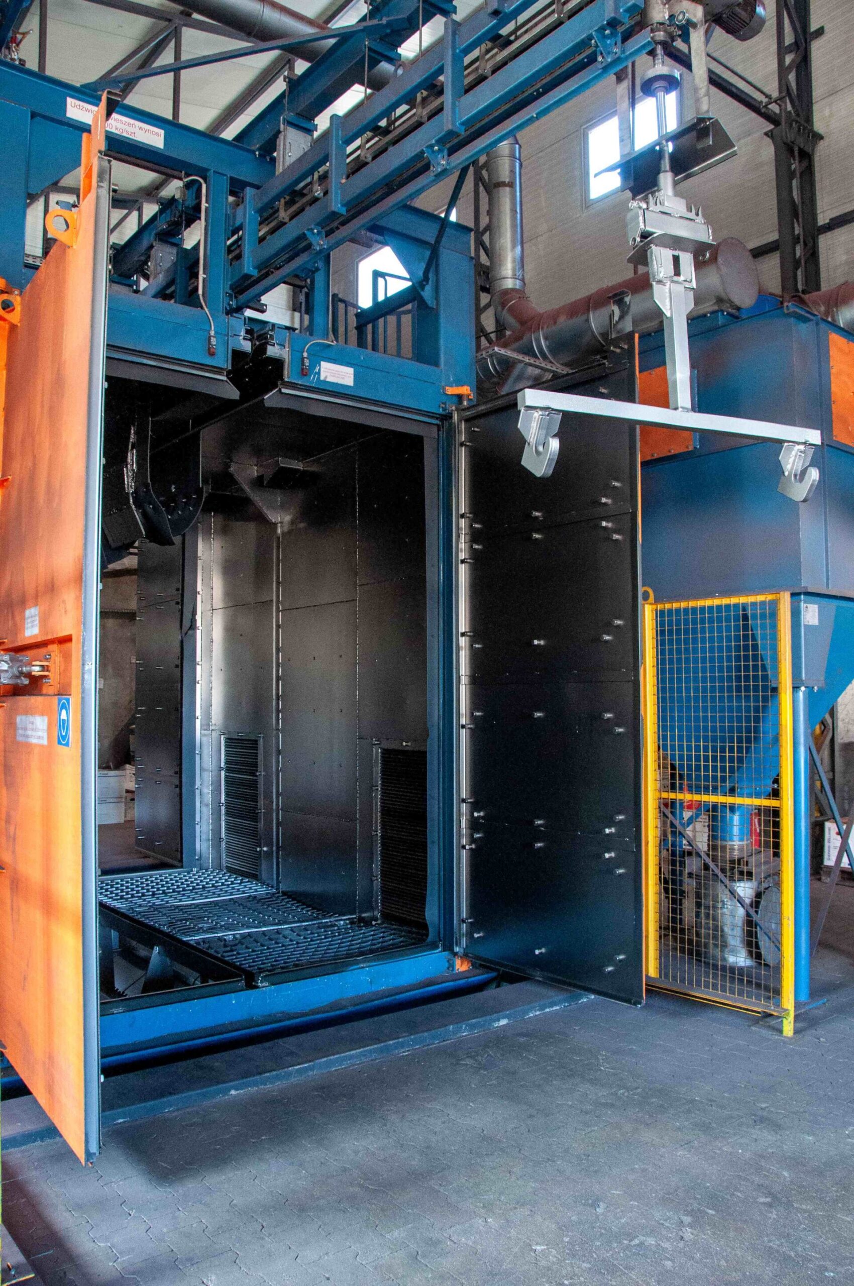 • Mocowanie: konstrukcja jest odpowiednio mocowana w komorze, aby zapewnić stabilność podczas całego procesu śrutowania.