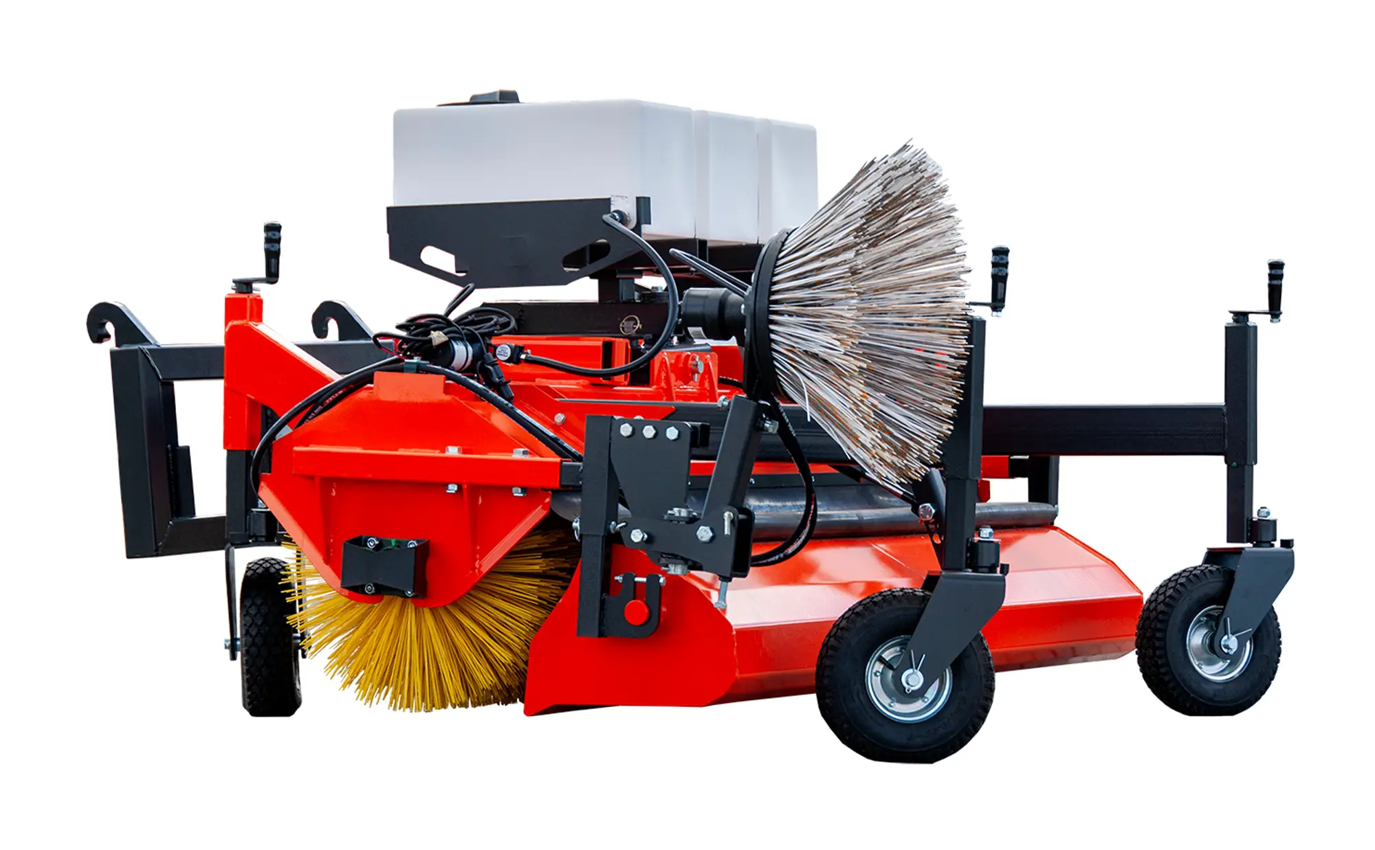 4. Możliwość montażu na różnych maszynach: zamiatarki mogą być montowane na przód ciągnika, mini ładowarki, wózek widłowy czy innych pojazdach, co zwiększa ich uniwersalność i pozwala na wykorzystanie w różnych warunkach.